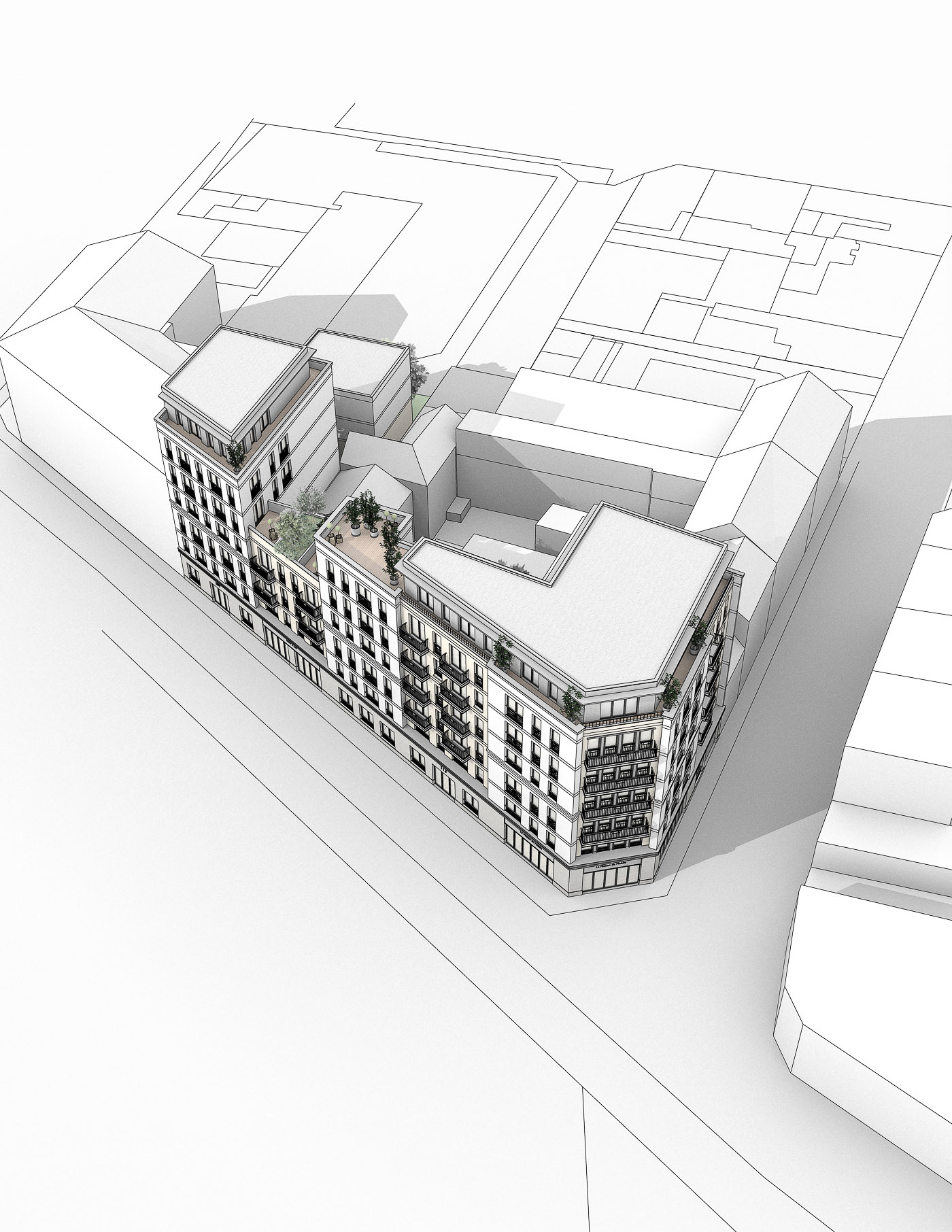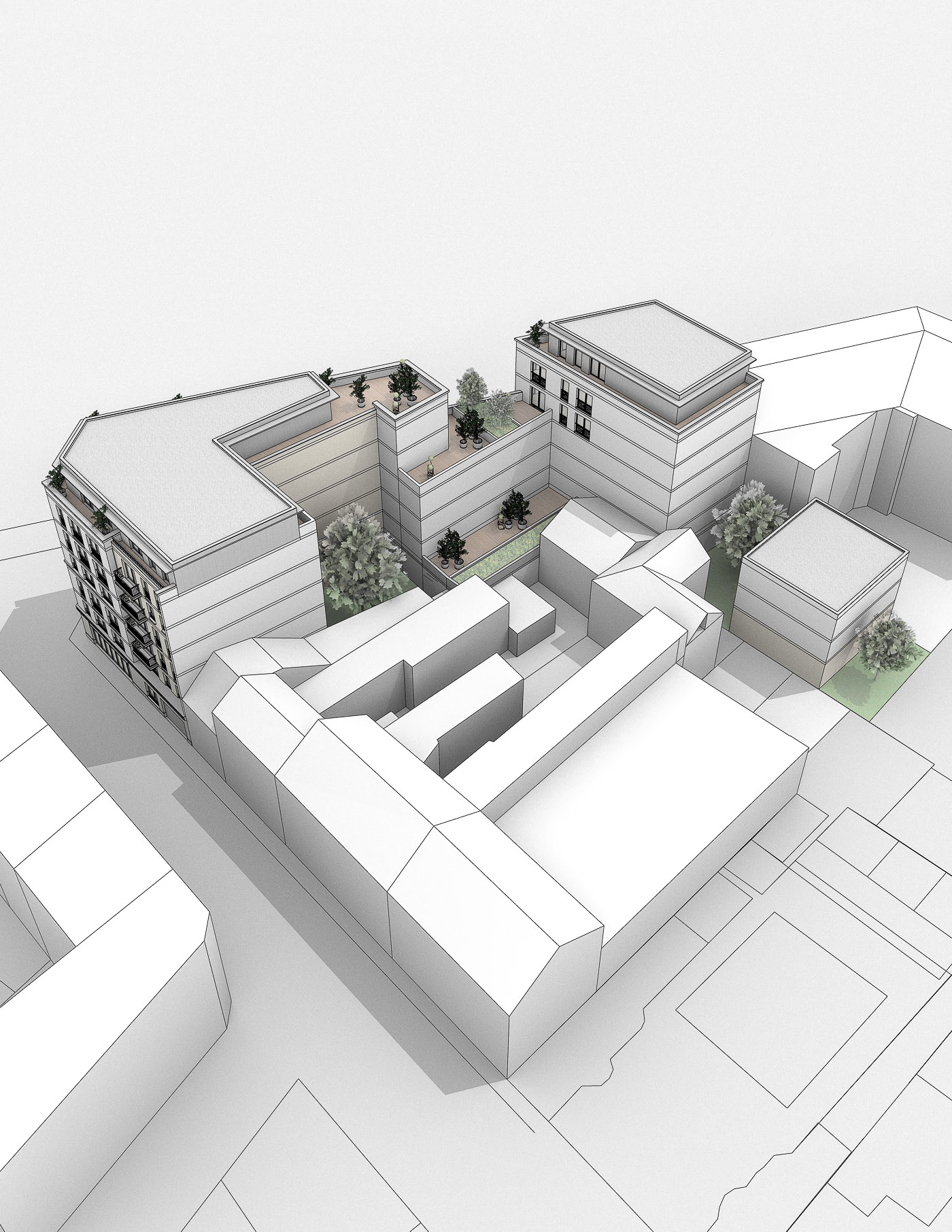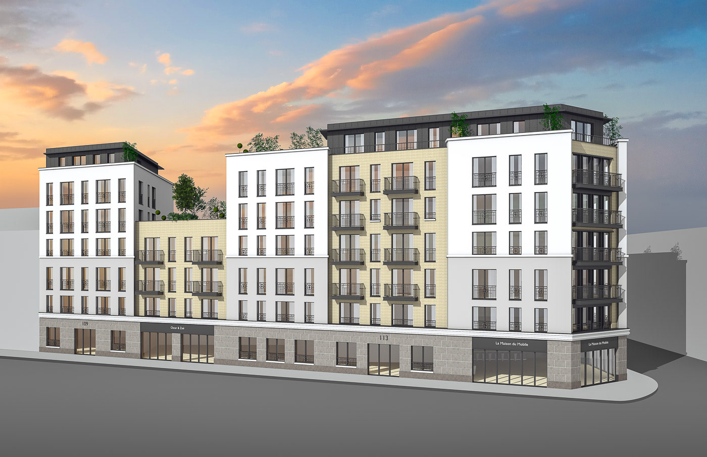 programme : Logements libres/Commerces - maître d’ouvrage : EUROPEAN HOMES - type de consultation : Etude de faisabilité - maître d’oeuvre : THUAL + BURET Architectes - calendrier : Etude en cours / chef de projet : Cédric THUAL
